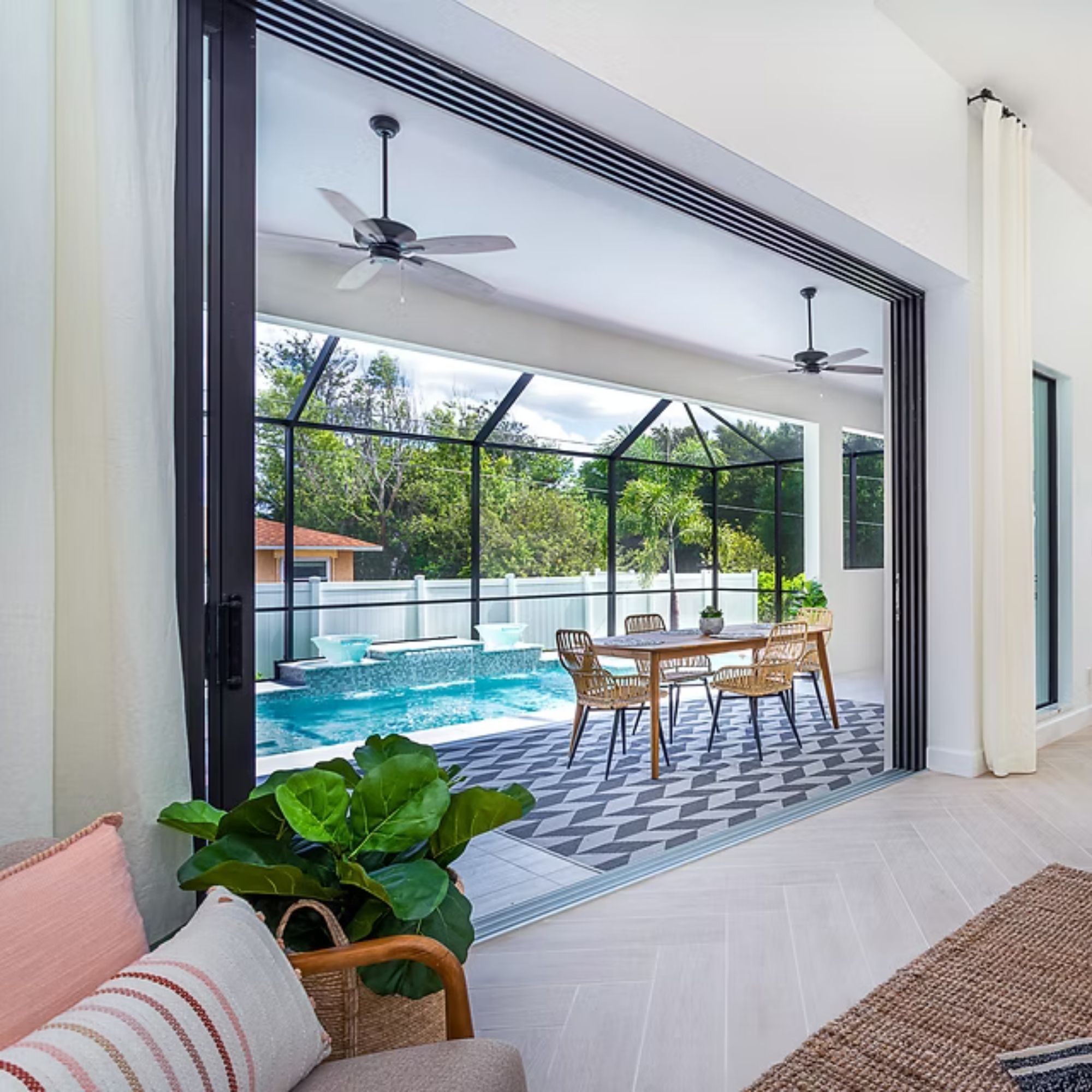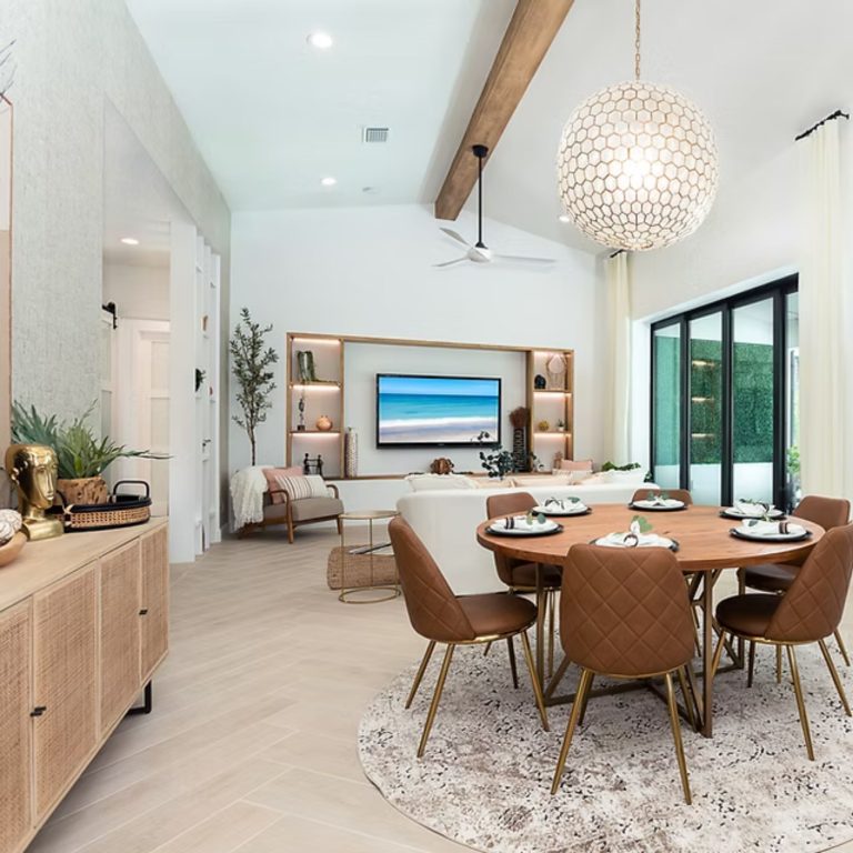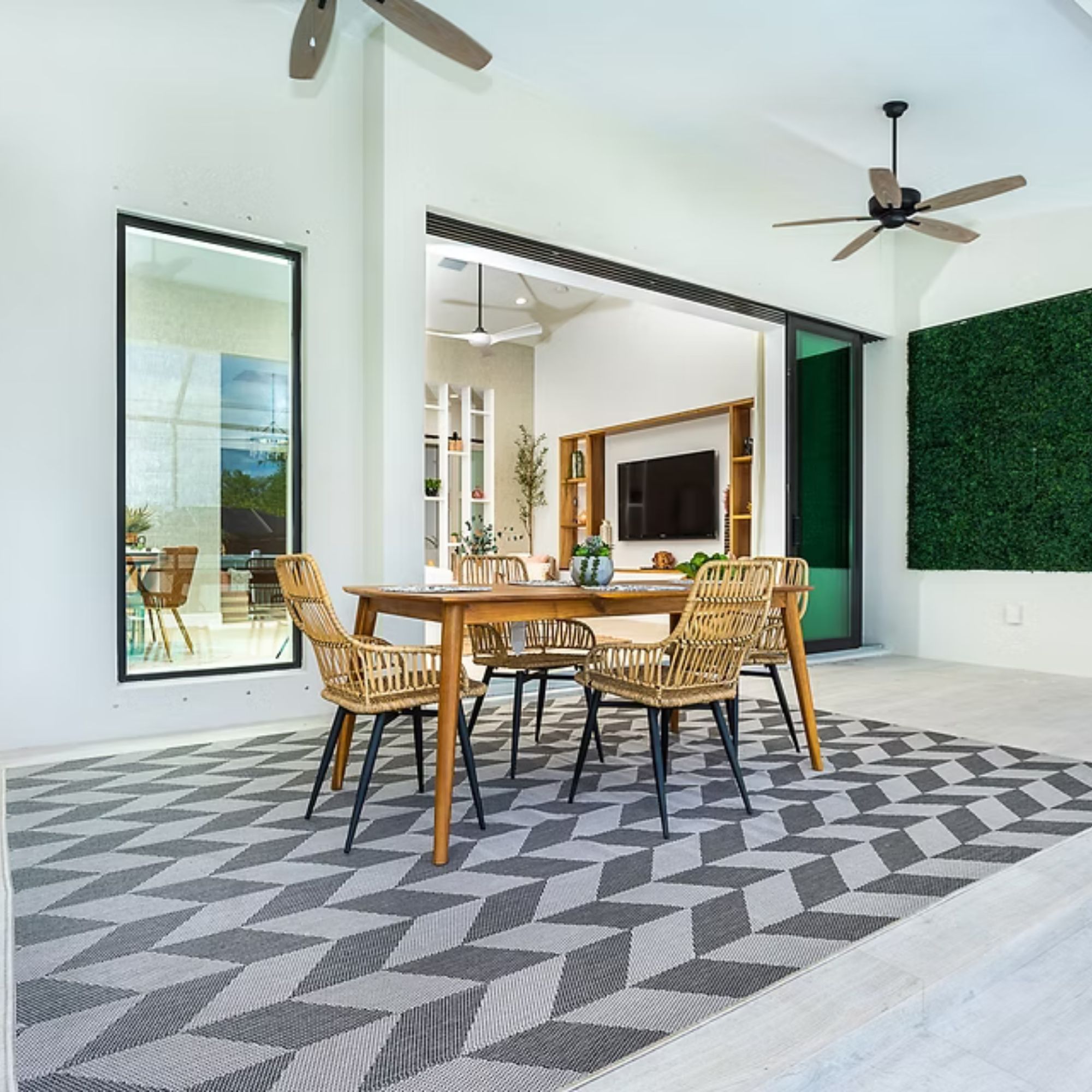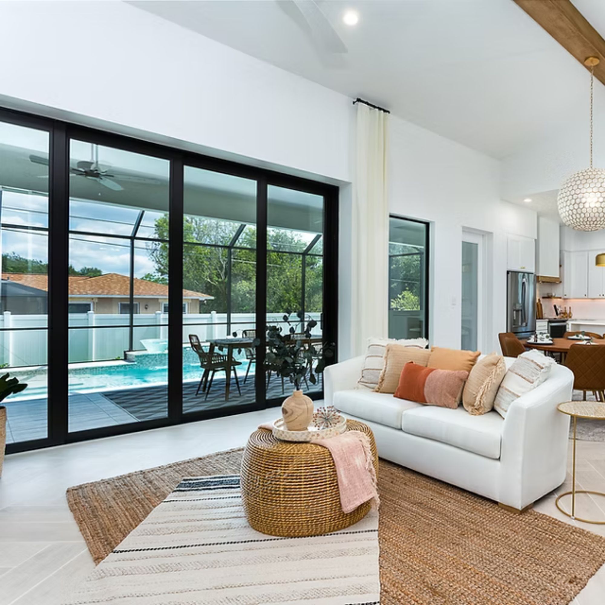 Living spaces connect naturally, creating a layout that supports both everyday living and entertaining. Large openings extend the interior outward, bringing in light and connecting to the outdoor living areas.