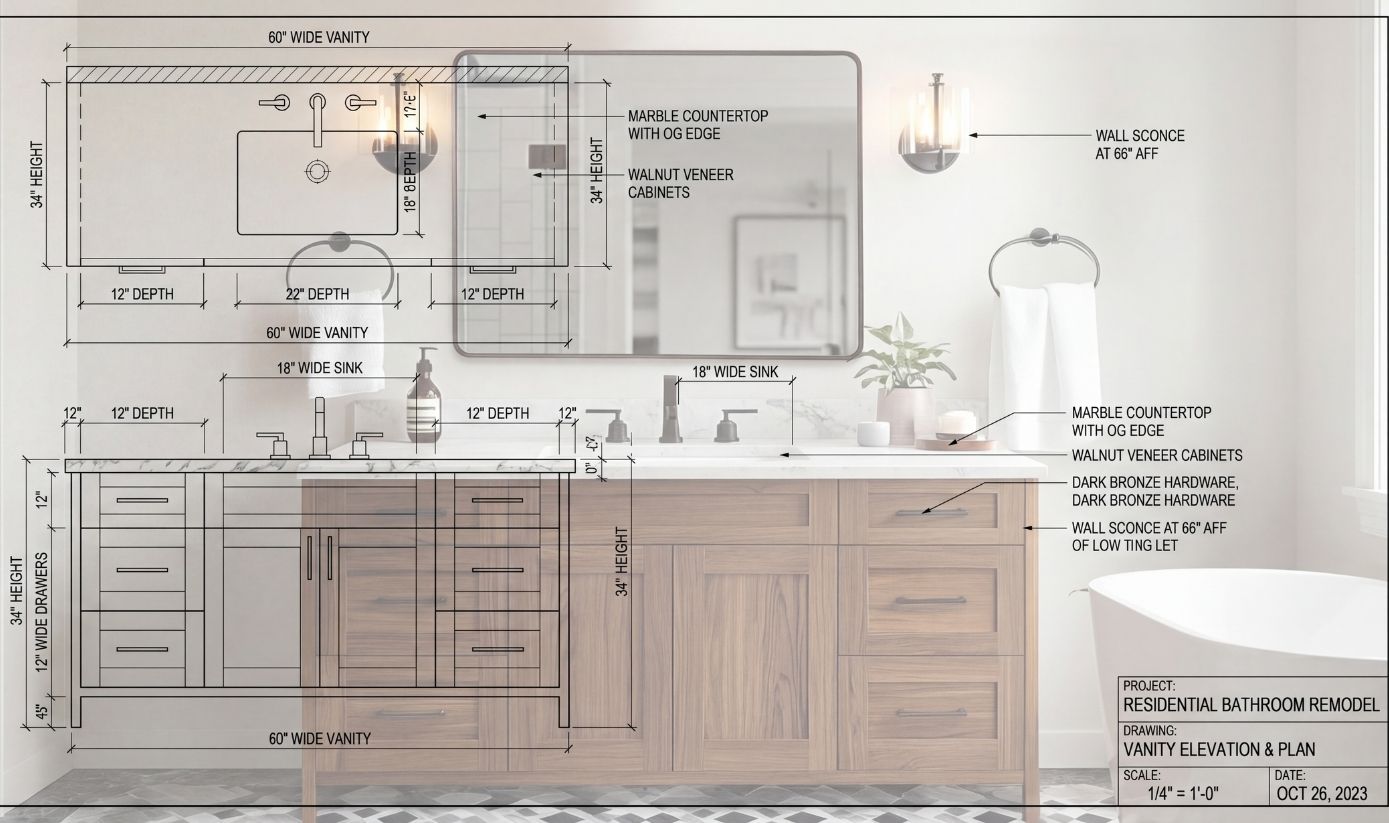 Not every project requires a full layout change. If the existing layout works, we refine it. If it doesn’t, tight spacing, poor fixture placement, or lack of storage, we rework it. The goal is simple: make the space feel better to use, not just look different.